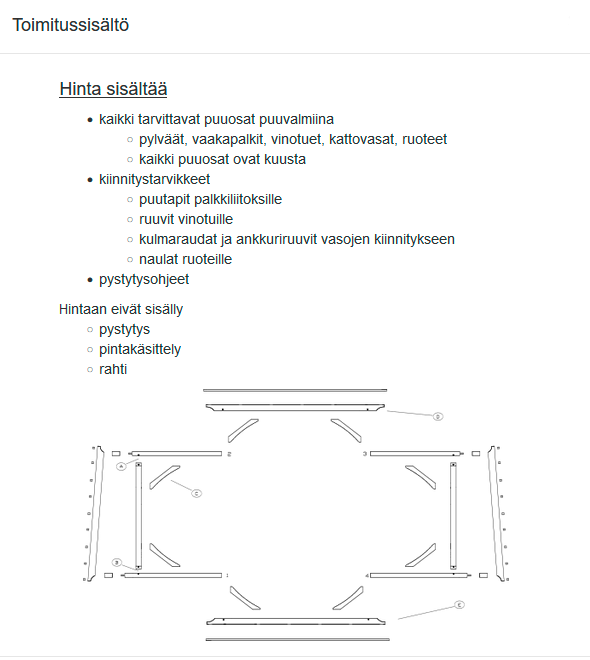 P. Matintupa Oy:n pergolat ja katokset valmistetaan käsityönä jykevästä massiivipuusta. Vaaka ja pystypalkit liitetään toisiinsa puuliitoksilla ja lukitaan puutapeilla. Liitokset ovat lujia ja kauniita. Ohjelmalla voit suunnitella mieleisesi katoksen ja lähettää suoraan ohjelmasta meille helposti yhteydenottopyynnön valintojesi mukaisesta mallista.